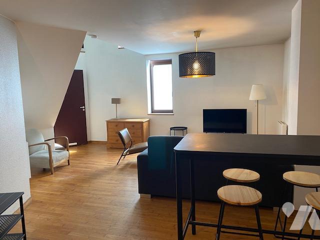 Rennes, rue de Dinan, appartement meublé, à louer en duplex, 51 m2 habitable, comprenant salon-séjour et cuisine équipée (four, plaque, lave vaisselle et frigo), à l'étage 2 espaces nuits et salle d'eau -wc. Eau comprise dans les charges. Libre au 5 novembre 2025
